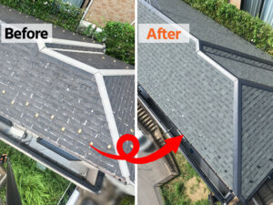 ただし、破損が広範囲に及んでいたり、下地材や防水紙が劣化している場合は、部分修理ではなく葺き替えやカバー工法の検討が必要です。