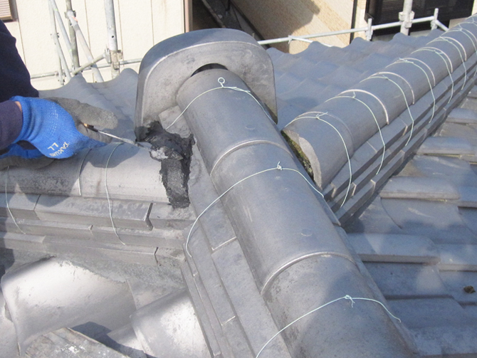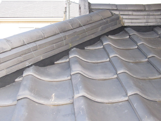 漆喰が痩せてしまい、瓦の固定力が低下している箇所も見受けられます。