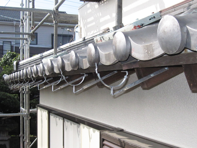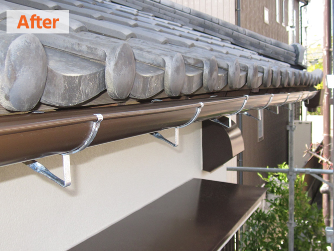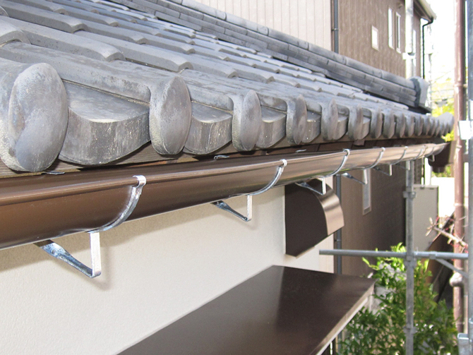 漆喰を塗り直すことで瓦の安定性を確保し、雨樋を交換することで
